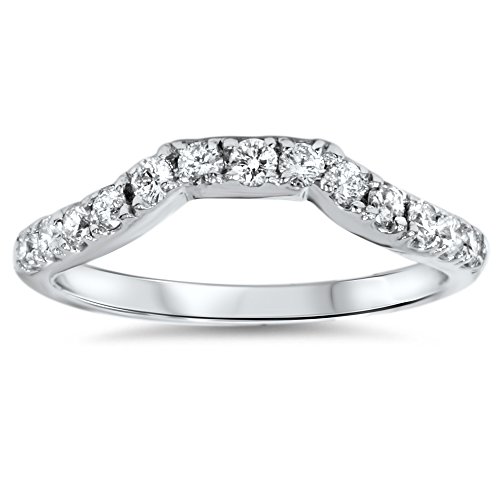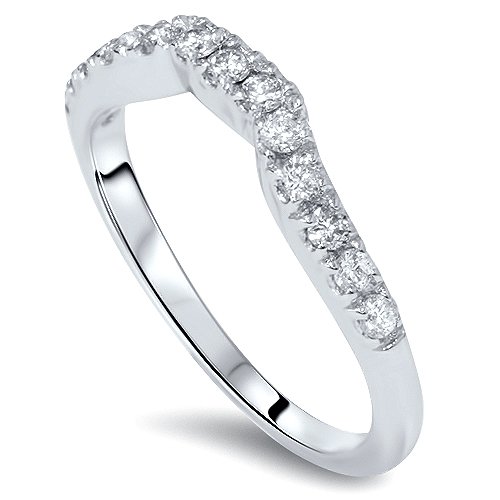 -. Title : .40ct Modern Curved Notched Geniune Diamond Band Enhancer 14K White Gold Ring
