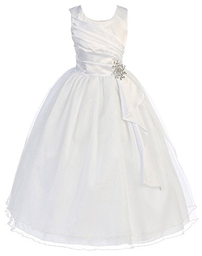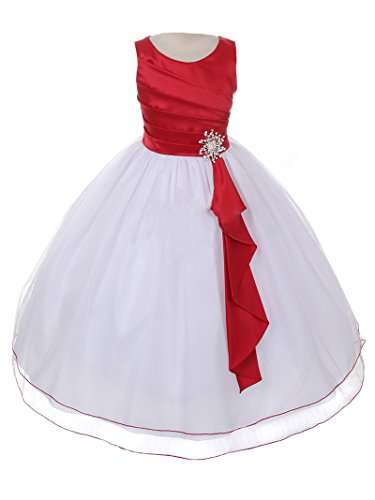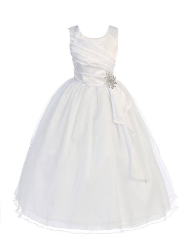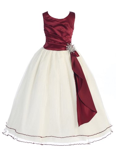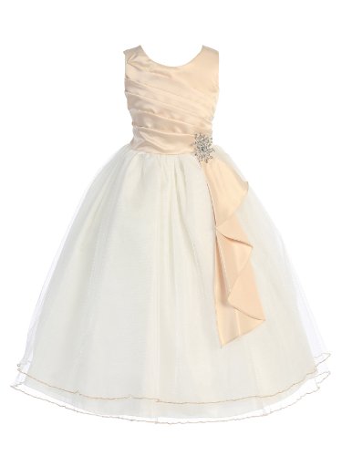 Available in sizes 4-14; Satin bodice dress with Tulle skirt; Made in USA