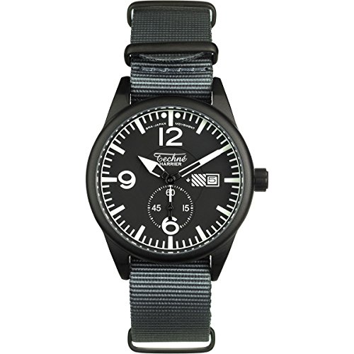 You don't need a pilot's license to enjoy the classic aviator-watch styling and lightweight comfort of the Techne Harrier 388 Watch. An aeronautical-grade aluminum alloy housing and canvas strap offer a lightweight feel that won't weigh on your wrist, and timeless military-inspired styling offers a versatile look you can take anywhere. Plus, it's durable and water-resistant enough to withstand your most aggressive adventures.Feature
