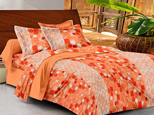 Casa Basics Ezy Collection Orange Geometric Cotton Queen Bedsheet With 2 Pillowcases (Specially used for economic sheets for Home & Beach) Beach Sheet