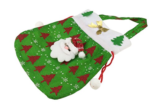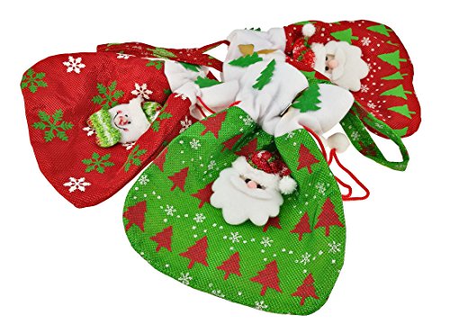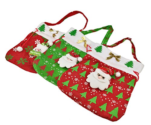 Set of 3 Christmas Printed Cloth Drawstring Pouches For Christmas Toy Gift Decorations