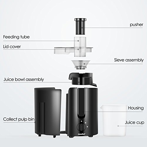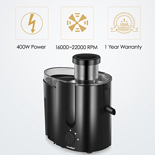 Comfee High Speed Juicer and BPA Free Centrifugal Juice Extractor with Juice Cup and Plastic Pusher for Safety, 400W, 2000RPM