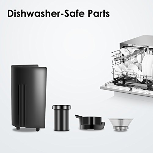 Clean up is a breeze with this dishwasher safe convenient juicing machine. Dishwasher safe parts: Pusher, Sieve assembly, Collect pulp bin, Juice cup