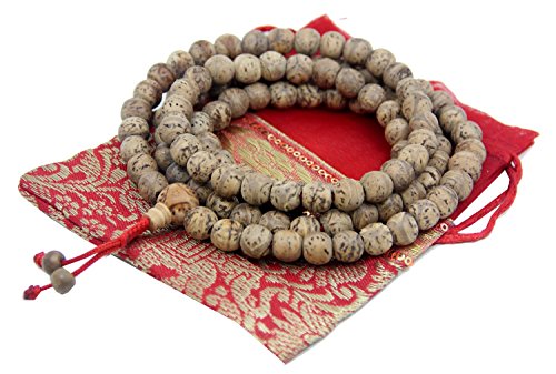 Bodhiseed is the seed of the tree under which Lord Buddha meditated and received enlightment. It is traditionally the most popular and religious mala for Tibetan Buddhists. It absorbs the oil from your skin and from the environment to become a beautiful shinny and dark with age and use. Size of bodhiseed mala beads are approximately 10 mm. Each of our Bodhiseed Mala will have matching Guru Bead and 100% Cotton Tassel. Note: All our Wooden and Seed Malas are well strung on Multi strands Nylon thread available here in USA with Love and Prayers.Feature