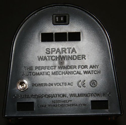 -. Feature : Sparta Mini Watch Winder in a Black Leatherette Case. AC Adaptor Included. / Orbita's "made-in-the-USA" patented Rotorwind winding movement. / WE ARE A FULLY AUTHORIZED DEALER. / Measures approximately (inches) 4.2H X 4.2W X 5.2D / 2 year warranty for any defects in materials and/or workmanship.