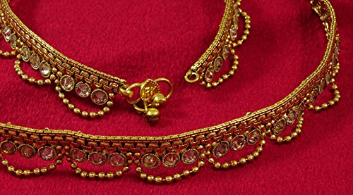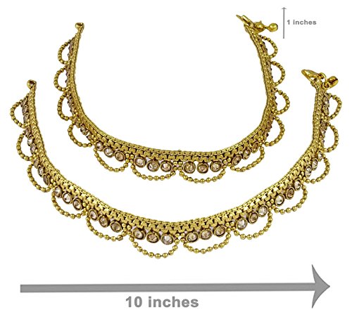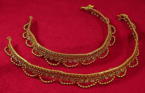 -. Binding : Jewelry -. Brand : Matra -. Color : Golden -. Department : womens -. Feature : Add an edge to your traditional look by wearing this pair of anklets for women / Sale For: 1 Pair Anklet; Metal: Alloy / Size: 10" Inches Long and 1" Inches Wide; Weight: 24 Gms (Approx.) / SKU: IMSM-SA15A; Made in India / Buy unique latest design of Indian Traditional Jewelry and Fashion Jewelry, click on the "Matra" under the title. -. Label : Matra -. Manufacturer : Matra -. Model : IMSM-SA15A -. MPN : IMSM-SA15A -. PartNumber : IMSM-SA15A -. ProductGroup : Jewelry -. ProductTypeName : FASHIONNECKLACEBRACELETANKLET -. Publisher : Matra -. Studio : Matra -. Title : Matra Goldtone Ethnic Ankle Bracelet Set Indian Women Traditional Party Payal Jewelry
