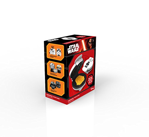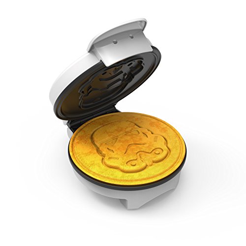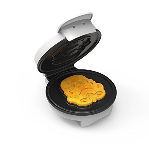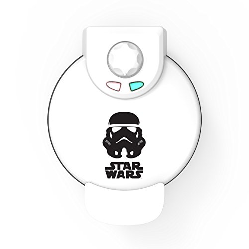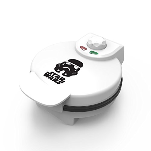 All fans of the Galactic Empire and Imperial Army will love our newest addition to the Star Wars assortment: the Star Wars Stormtrooper Waffle Maker. Take breakfast to a galaxy far, far away with this non-stick waffle maker. It makes tasty waffles your way, with five temperature settings that let you make waffles quickly and easily. Whether you like them brown and crispy or tender and golden, the regulated thermostat and weighted lid ensure even heating, while the dual indicator lights make adding batter and removing the finished product easy. More than just a waffle iron, this can also be used to make eggs, brownies, cakes, quesadillas or even as a Stormtrooper sandwich press! Waffle maker is compact, easy to use and easy to clean.Feature