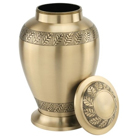 Silverlight Urns Golden Leaves Brass Urn for Ashes, Gold Adult Cremation Urn