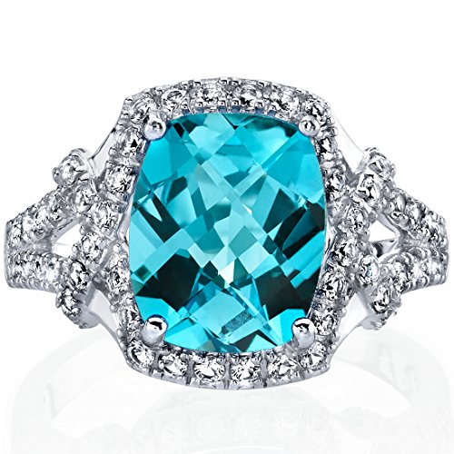 -. Title : Swiss Blue Topaz Cushion Cocktail Ring in 14K White Gold (3.50 carat)