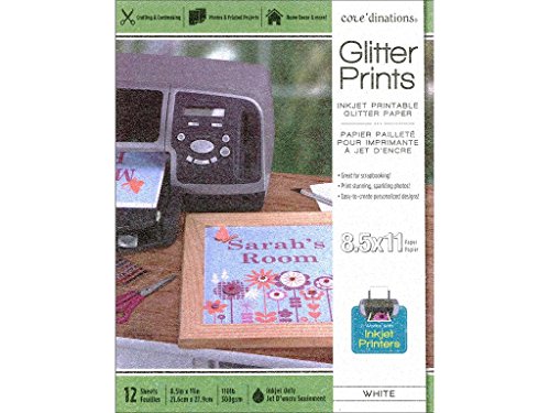 - Glitter 8.5x 11White- use this specialty paper in your home inkjet printer just like everyday paper, it has optimal color vibrancy. 12 sheets of iridescent White glitter paper, 110 weight
