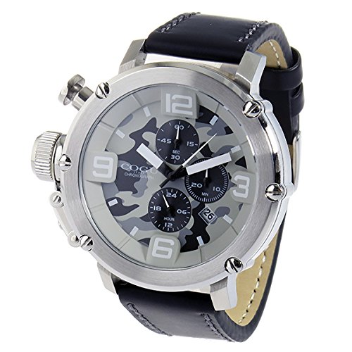 cog COGU 크로노그래프 시계 워치카모플라쥬밀리터리 패션 상품 사양:(약)H48×W50×D15mm(러그,시계의 태엽을 감는 꼭지를 제외한다)고, 무게 약120g,팔 주위 최대 약20.5cm,팔 주위 최소 약16cm 스테인레스(케이스)고, 레더(벨트) 전용BOX,보증서,취급 설명서