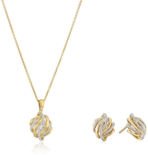 -. Title : Sterling Silver Knot Earrings and Pendant Box (1/10 cttw)