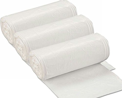 150 TRASH CAN LINERS, TRASH BAGS 16 GALLON, FITS AS 15 14 13 OR 12 GALLON, TALL, WHITE MEDIUM TRASH BAGS , RATED AS 20 LB GARBAGE BAGS BY JANITORIAL SUPPLIES STANDARD LIFT STRENGTH, 3 ROLLS OF 50