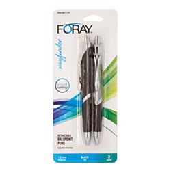 -. Title : FORAY(R) Wayfinder Retractable Ballpoint Pens, 1.0 mm, Medium Point, Black/Silver Barrel, Black Ink, Pack Of 2