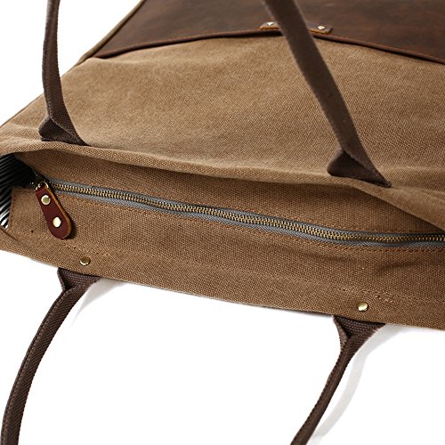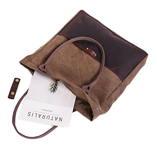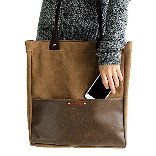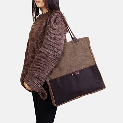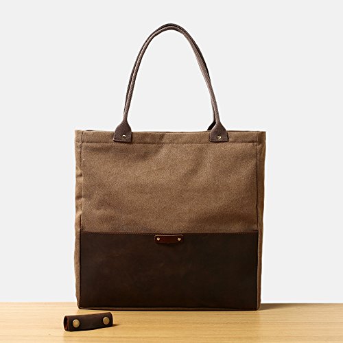 Fantasylinen Handcrafted Canvas and Leather Casual Tote Bag Shopper Bag Handbag in coffee