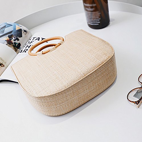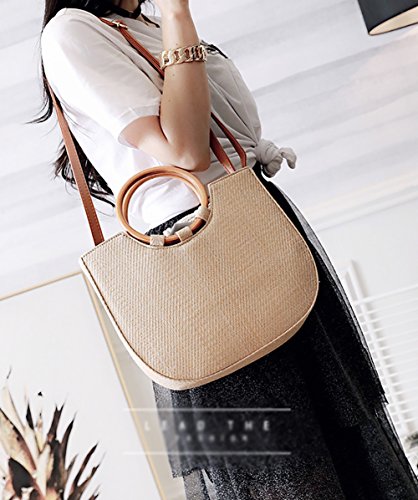 LaviniaLee Women Straw Beach Bag Top Handle Handbag Travel Tote Long Strap Shoulder Bag