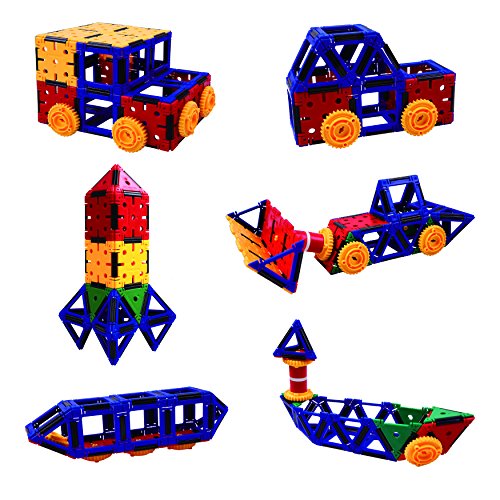 -. Feature : Great gift for ages 5-12: combines creative building fun with exposure to early engineering/math / Promotes spatial and fine motor skills: 137 colorful geometric pieces snap together and pivot / Six different vehicle building options for hours of play: jeep, car, rocket, ship, bulldozer, subway / Activities to build STEM/math skills: multiplication, fractions, area, volume, tangram logic puzzles / Less mess: includes resealable plastic bag to keep pieces organized and off the floor