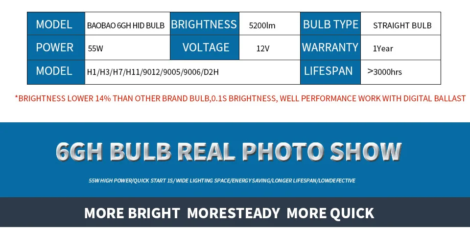 Bulb Type:H1 H3 H7 H11 9005 9006 D2H