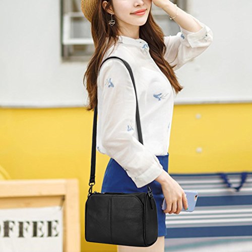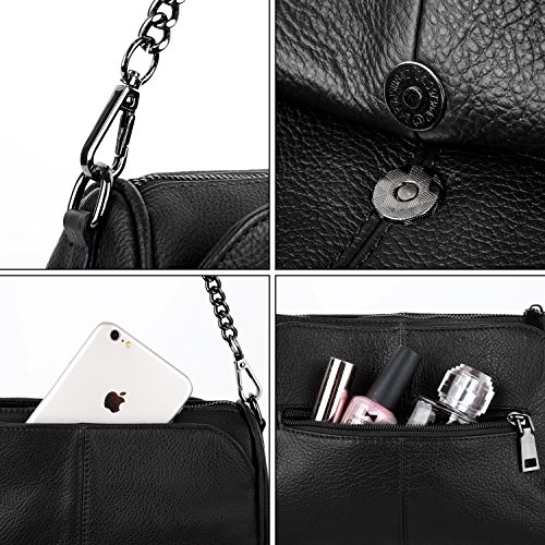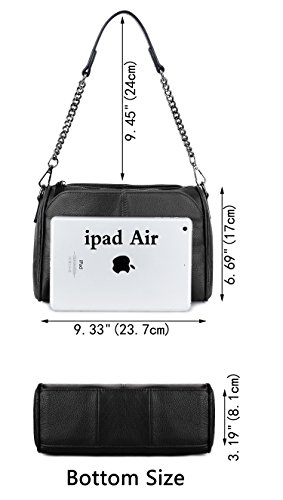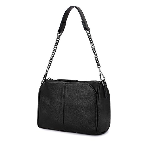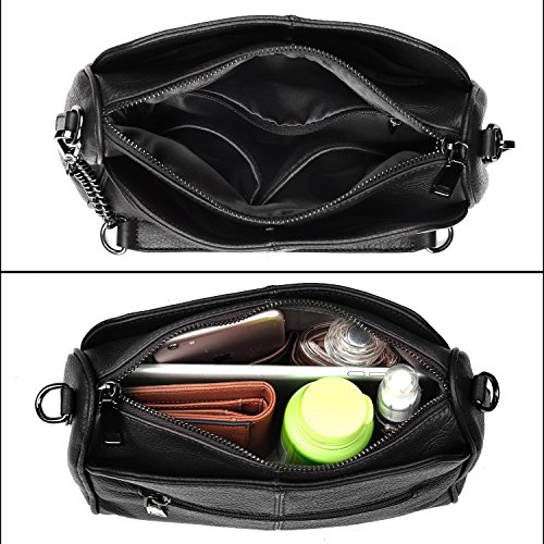 YALUXE Women's Cowhide Leather Purse Tote Shoulder Bag Hobo Handbag for Womens black