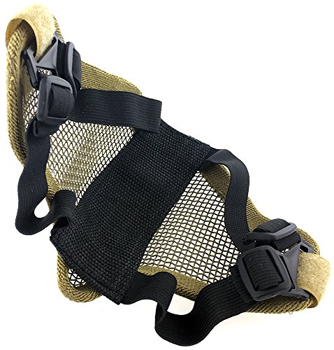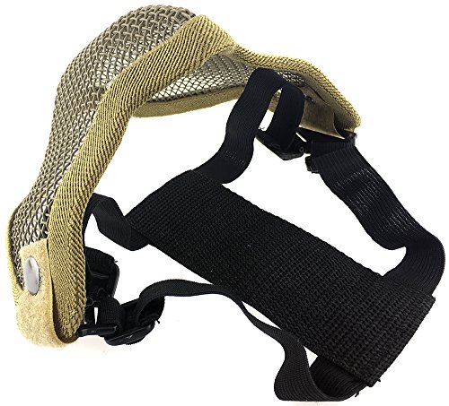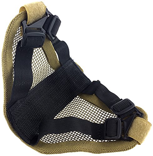 -. Binding : Misc. -. Brand : SportPro -. Color : Black -. EAN : 6081499598562 -. Feature : • Flexible and Moldable Mesh / • Lower Face Protection / • Padded Head Strap for Extra Comfort / • Adjustable Head Band / • Maximum Air Flow -. IsAutographed : 0 -. IsMemorabilia : 0 -. Label : CM -. Manufacturer : CM -. ProductGroup : Sports -. ProductTypeName : SPORTING_GOODS -. Publisher : CM -. Studio : CM -. Title : SportPro Mesh Lower Face Half Face Mask for Airsoft - Dark Earth