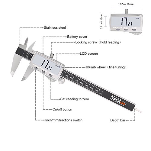 Tacklife DC02 Stainless Steel Digital Caliper 6 Inch with 2inches Wide Display Super Clear Inch/Fractions/Millimeter Conversion High Accuracy