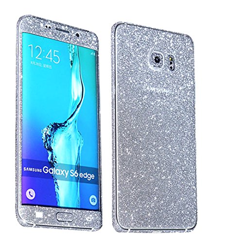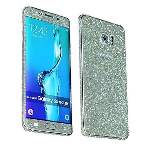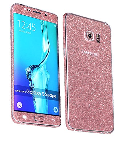 Just Mode(TM)Bright Color Glittering Style Full Body Bling Glitter Film Sticker Case Cover Protector for Samsung Galaxy S6 Edge-Bright Pink