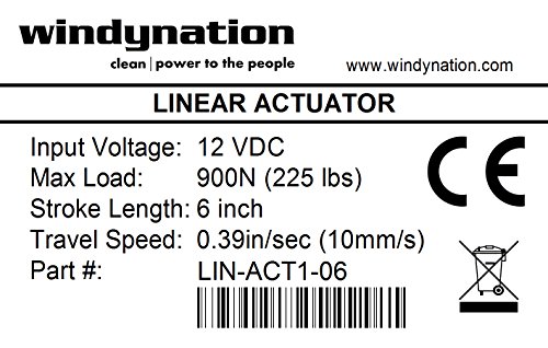 WINDYNATION 6 Inch 6" Stroke Linear Actuator 12 Volt 12V 225 Pounds lbs Maximum Lift (Includes Mounting Brackets)