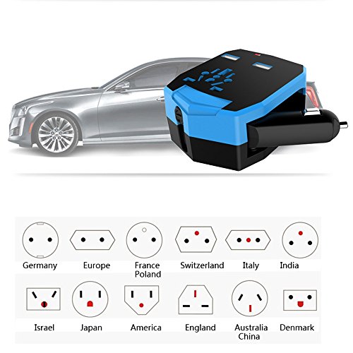Worldwide Travel power adapter with US, Australia, EU and UK Standard can be used in More Than 150+ Countries, The World's first Travel Charger with a built-in CAR CHARGER. An ideal companion for your trip.