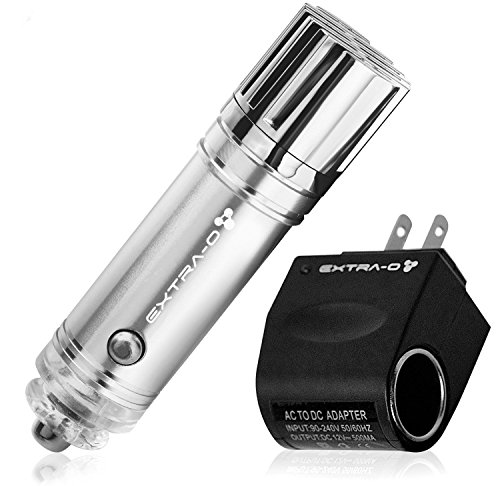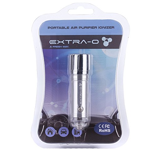 EXTRA-O Car Air Purifier Ionizer with Home 12V Adapter - Removes Cigarette Smoke, Bacteria, Odor Smell - Helps With Allergies - Mini Air Cleaner Gadget Smoke Eater Eliminator Remover - Silver B00RSOLXFM