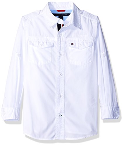 Tommy Hilfiger Big Boys Jefferson Woven Long Sleeve Shirt, White, X-Large
