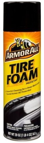 Spray on and dirt floats away. Cleans, shines & protects tires. One easy step. No wiping. One step to clean, shine and protect tires. Spray on and foaming action floats dirt away. Keeps tires looking like new. Armor All Tire Foam cleans tires within minutes without wiping and leaves a lustrous shine. It also penetrates tires to protect against the elements that crack and fade sidewalls. This can will clean, shine and protect up to 40 tires and will not harm wheels or wheel covers. Contains no CFCs which deplete the ozone layer. Contains no phosphorus. Contains silicones. Made in USA.