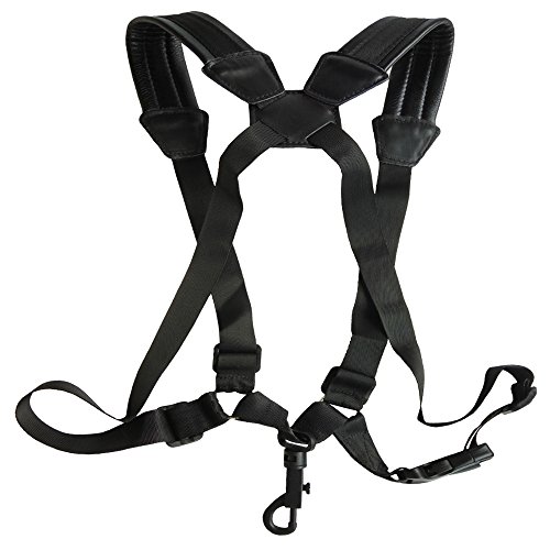 Xinlink Professional Saxophone Strap Black PU Leather with Locking Swivel Hook Fully Adjustable for Alto Tenor Soprano Bariton Sax Shoulder Harness