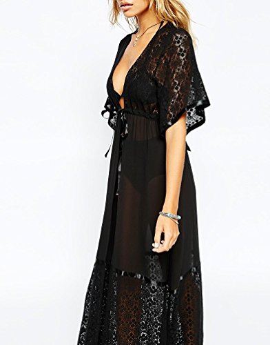Binding : Misc. Product Description Features: Lace Chiffon Hand wash Imported Pull-on style Collarless Unlined; Semi-sheer Batwing sleeves Adjustable self-tie detail at center Crochet-lace details Relaxed fit Maxi silhouette/ 51 inches Package include: 1 x Cover up Maxi Dress 0