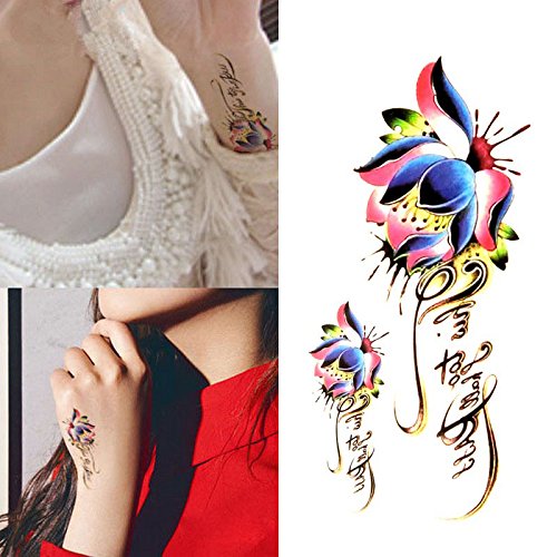 Oottati Small Cute Temporary Tattoo Lotus Flower Words (2 Sheets)