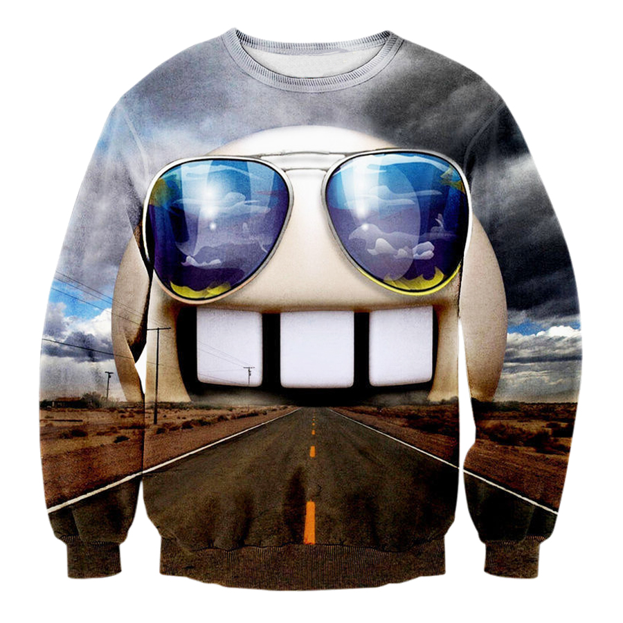 Pattern of sweatshirts: Funny Cartoon Tunnel With Glasses On The Road 3D Print