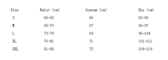 Size Waist (inches) Inseam (inches) Hip (inches)