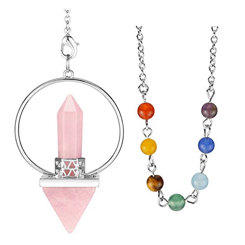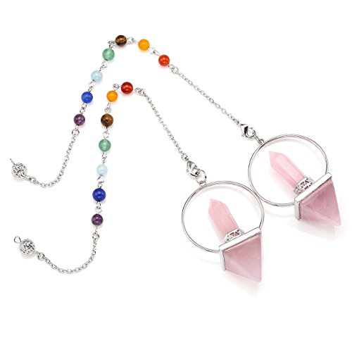 Top Plaza 7 Chakra Reiki Healing Dowsing Crystal Pendulum Hexagonal Prism Pyramid Stones Pendant For Balance,Meditation,Divination(Rose Quartz)