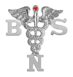 -. Title : NursingPin - Sterling Silver BSN Lapel Pin with Ruby