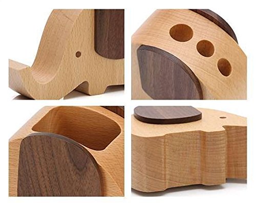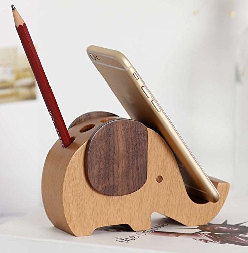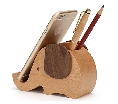 SHADIAO Holder for Desk & Cute Gifts , Wood Elephant Pen Hotan, Wood Elephant Pen Holder Container With Phone Holder Desk Organizer 5.12 L 1.89 W3.27 H