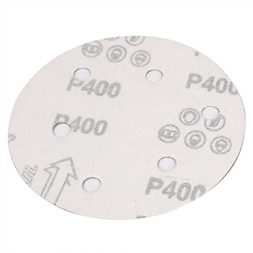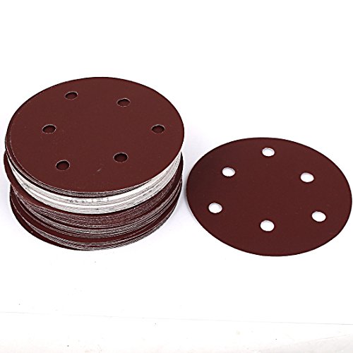 uxcell 5 Inch Dia 400 Grit 6 Holes Self Hook and Loop Sanding Paper Discs Brown 50 Pcs