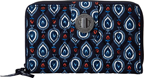 Studio : Vera Bradley Publisher : Vera Bradley Binding : Accessory Product Description Holds your credit cards, currency, checkbook and identification. Rear exterior zip pocket. Lined zip compartment with credit card slots and full length currency compartment. Top tab with a twist lock closure. Interior with full length currency compartment, credit card slots and dual identification windows. Dimensions: 7 1/2' wide x 1' deep x 5' high. 0