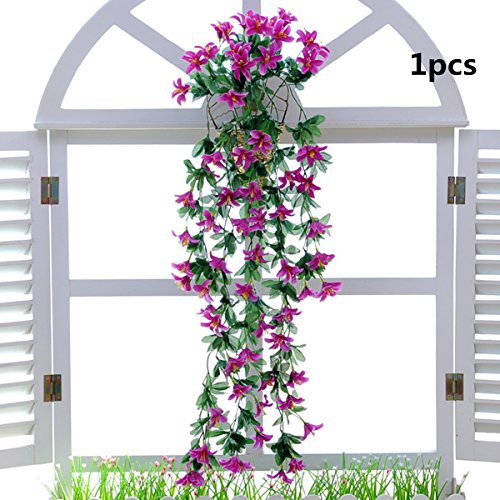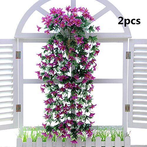 Coobl® Artificial Silk Lily Bud Garland Plants Vine Flowers Floral Wedding Party Wall Home Decor Purple(2pcs) (purple)