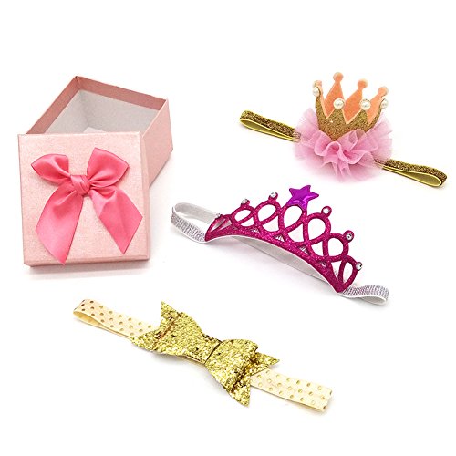 Product DescriptionBaby Hair Accessories Girl's Shiny Bow Crown Headband Pearl Rhinestone Crystal Value Set Toddler with Gift Box Baby the best gift Packaging includes: 3 pieces different colors headbands WARNING: Small parts can choke a child if they become detached, adult supervision required0