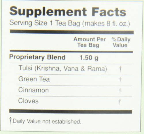 -. Feature : 25 Individually wrapped teabags in self-dispensing box / USDA Certified Organic and Fair Traded Certified / Contains caffeine / Contains powerful adaptogenic properties (anti-stress) and ayurvedic properties (healing common ailments and strengthening body's immune system) / Bulk pack