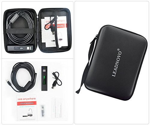 [PORTABLE, WIRELESS, EASY TO SETUP ]: LEADNOVO endoscope come with portable storage case. borescope using without extra adapter or cable, Search "HD SEE" in apple store or google play download and install it. This wireless endoscope can be quickly connected with your smartphone/PC via Wi-Fi.