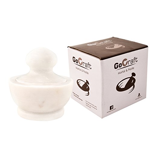 Christmas Holiday Gifts - GoCraft Mortar and Pestle | Mushroom Shaped White Marble Handmade Pill Crusher/ Grinder for Pills, Herbs, Spices (4")