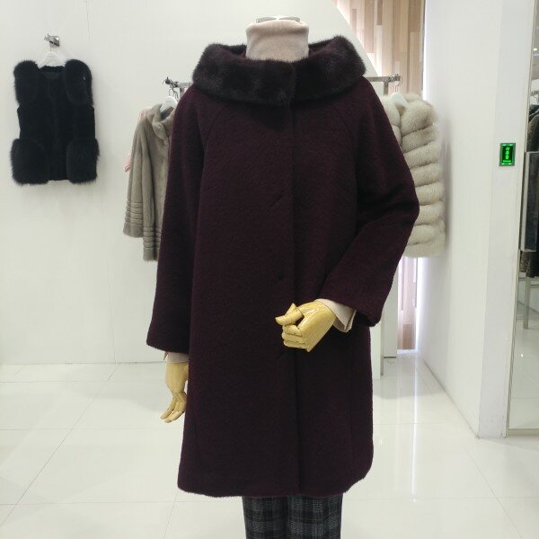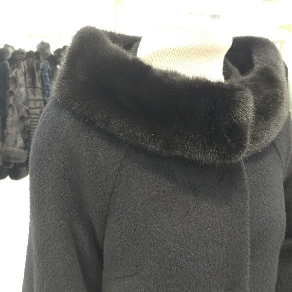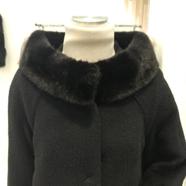햅번스타일의 밍크퍼 네크라인이 모던한 무드를 자아내는 본 제품은