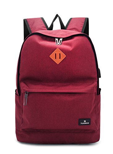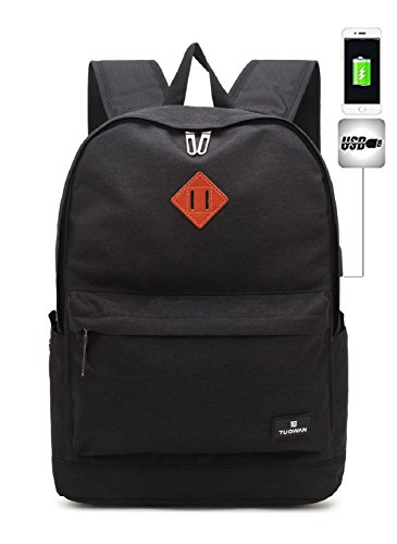 tuowan Canvas School College Backpack 15.6 inch Laptop Travel Bag with USB Charging Port