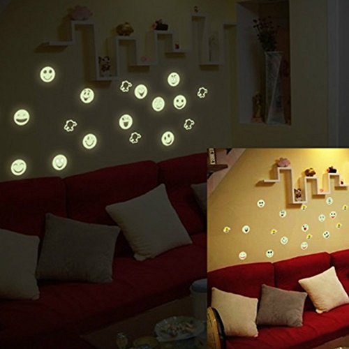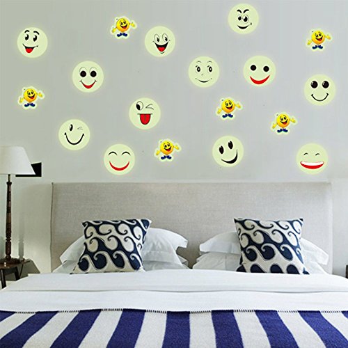 -. Title : ZMvise Glow Luminous Decal Emoji Wall Stickers Flurescent Plastic Ceiling Night Smiley Face Stickers Removable Decorative Stickers Perfect for Baby Kids, Adult or Nursery Room (21 x 29.7cm)