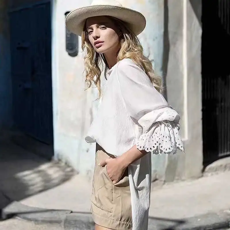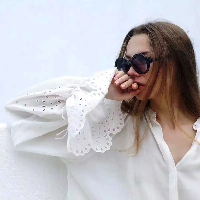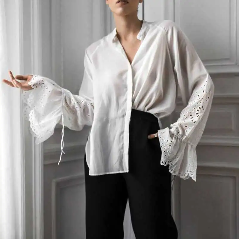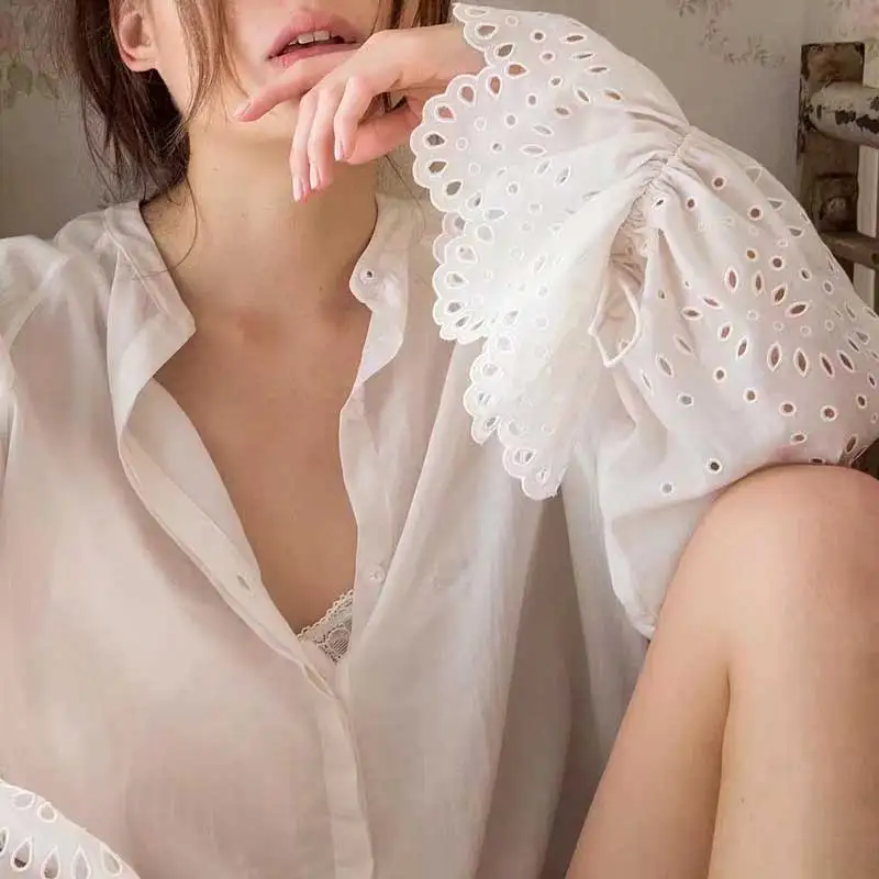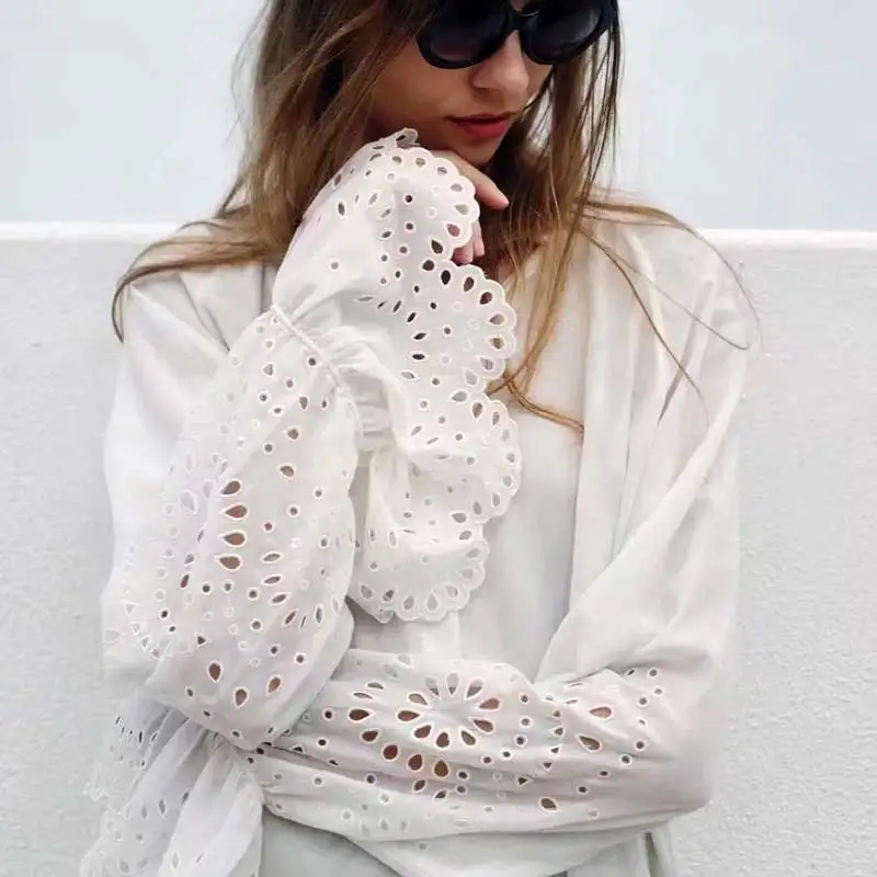 Bohemian Skirt Feature:white long lace hollow out petal sleeve single-breasted